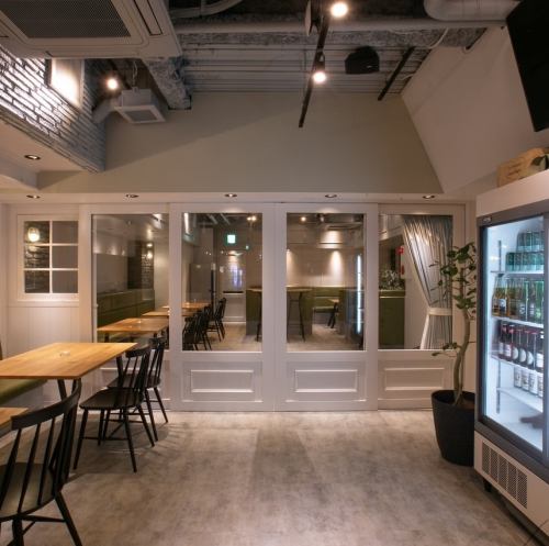 ゆったりとした大人な空間。おしゃれで心地よいお席で、お食事とお酒をお楽しみください。涼しい季節には外では立ち飲みが最高です!